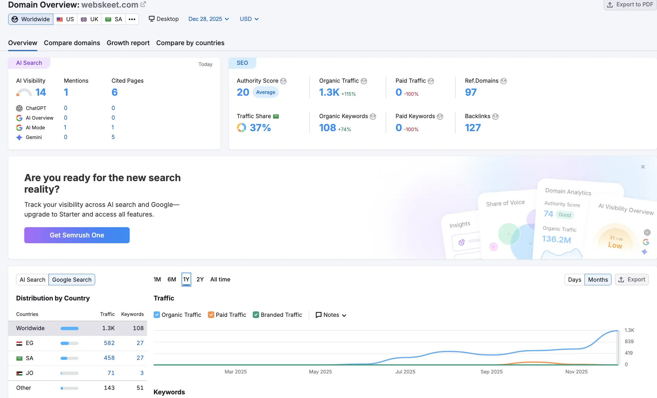 الوصف: أداة مجانية/مدفوعة بسيطة لتحليل الكلمات المفتاحية والمنافسين.